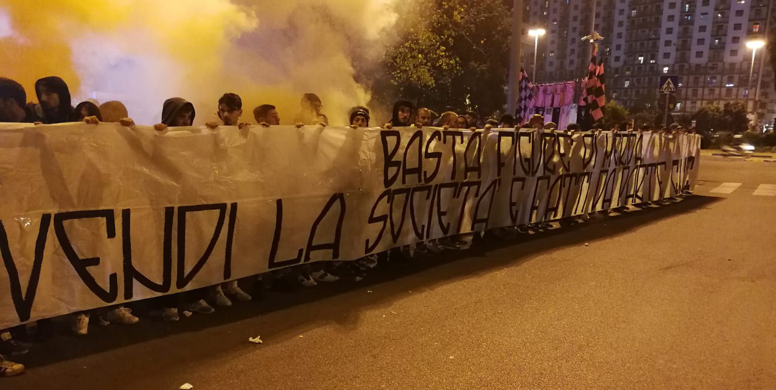 Il gruppo di tifosi scrive: “Basta figure di merda, vendi la società e fatti da parte“. Poi i cori al grido di: “Zamparini vattene via”.