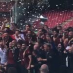 Arriva la cerimonia di premiazione per l’accesso in Serie A. La Salernitana ha festeggiato ed è stata premiata ufficialmente oggi per l’ingresso nella massima serie sul campo dell’Arechi. Un momento di felicità estrema atteso ventitré anni e vissuto sulle note della famosa canzone dei Queen “We are the Champions”.