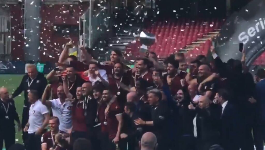 Arriva la cerimonia di premiazione per l’accesso in Serie A. La Salernitana ha festeggiato ed è stata premiata ufficialmente oggi per l’ingresso nella massima serie sul campo dell’Arechi. Un momento di felicità estrema atteso ventitré anni e vissuto sulle note della famosa canzone dei Queen “We are the Champions”.