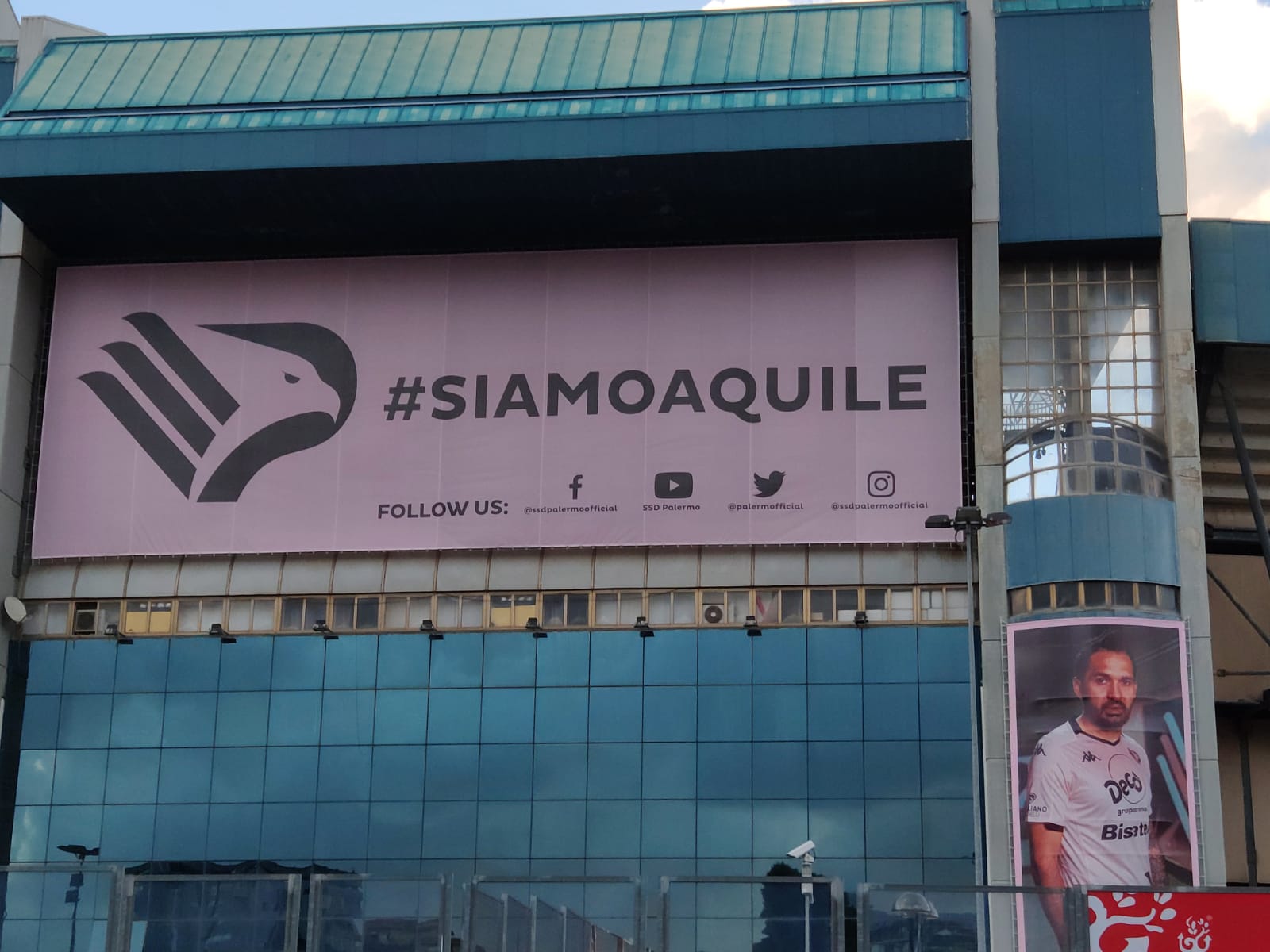 Novità al ‘Renzo Barbera’. In occasione della presentazione della nuova maglia, è stato affisso in corrispondenza della torre Sud dello stadio, una gigantografia raffigurante il capitano Mario Alberto Santana con indosso la maglietta rosa.