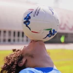 Come si legge nel comunicato però c’è anche una novità grafica: “Un omaggio al territorio italiano. Le regioni sono individuate all’interno del pattern presente sul logo degli omini in differenti tonalità di azzurro, le linee presenti sul pallone sono invece delle curve di livello di una porzione del suolo Italiano, infine il tricolore è presente sulla sfera per quattro volte”.