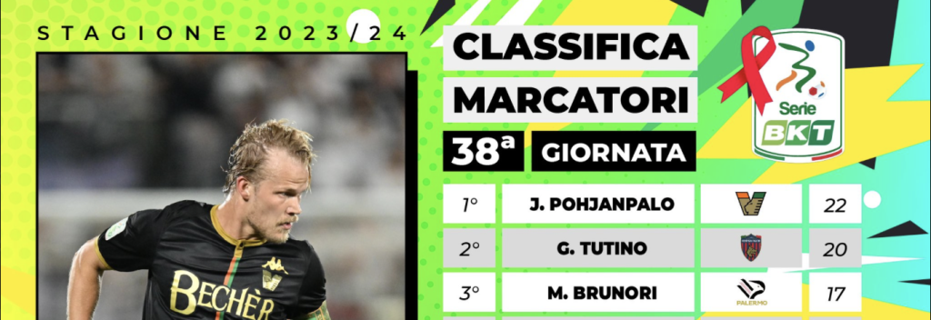 Joel Pohjanpalo vince il ‘Pablito’ della Serie B, il premio per il capocannoniere del campionato. L’attaccante del Venezia ha chiuso la regular season con 22 gol, mettendosi alle spalle un ex rosanero e l’attuale capitano del Palermo.