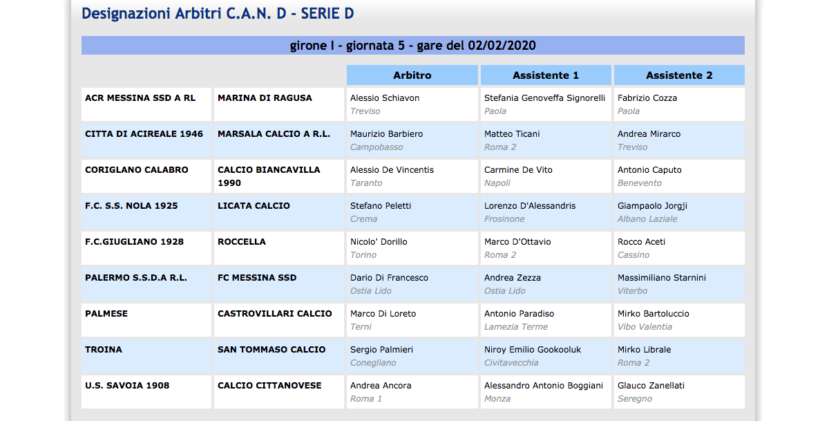 schermata-2020-01-31-alle-10-52-11 Continue ReadingPrevious Serie D, Girone I: gli arbitri della 22a giornata COMMENTA / VAI AI COMMENTILascia un commento Annulla rispostaIl tuo indirizzo email non sarà pubblicato. I campi obbligatori sono contrassegnati *Commento * Nome * Email * Sito web Salva il mio nome, email e sito web in questo browser per la prossima volta che commento. Δ