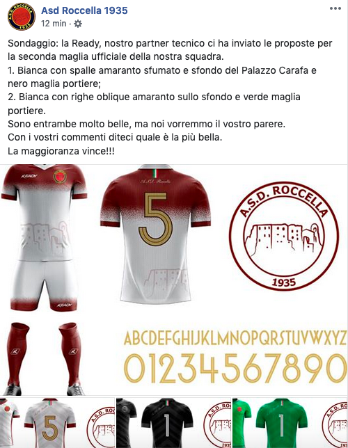 Anche il Roccella chiede l’aiuto dei tifosi per la scelta delle maglie da gioco. La società calabrese, infatti, sta promuovendo un sondaggio su Facebook per decidere la seconda maglia ufficiale.