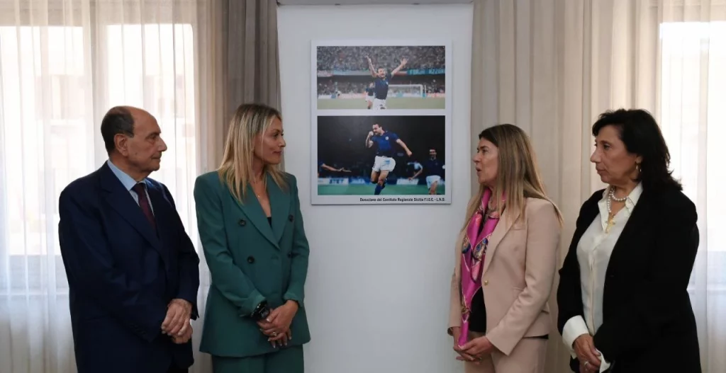 Accanto a loro, anche il presidente del Comitato Regionale Sicilia FIGC-LND, Sandro Morgana, la dirigente generale Maria Concetta Antinoro e la moglie del calciatore, Barbara Lombardo. Tutti insieme hanno voluto testimoniare l’affetto della comunità e delle istituzioni per una figura che ha lasciato un segno indelebile nella storia dello sport italiano.