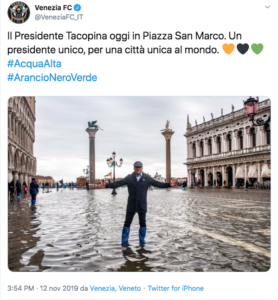 schermata-2019-11-12-alle-15-59-28 Continue ReadingPrevious A Venezia c’è l’acqua alta. E Tacopina… si fa una foto a Piazza San Marco COMMENTA / VAI AI COMMENTILascia un commento Annulla rispostaIl tuo indirizzo email non sarà pubblicato. I campi obbligatori sono contrassegnati *Commento * Nome * Email * Sito web Salva il mio nome, email e sito web in questo browser per la prossima volta che commento. Δ