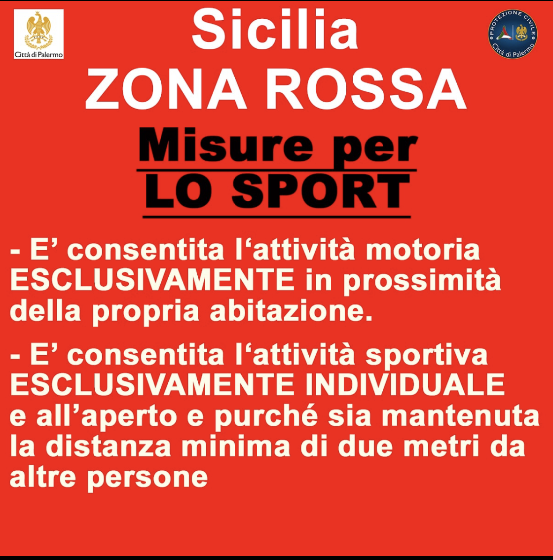 La Sicilia è stata indicata come “zona rossa”, quindi è vietato ogni spostamento in entrata e in uscita dal territorio, salvo che per gli spostamenti motivati da comprovate esigenze lavorative o situazioni di necessità ovvero per motivi di salute. Sono comunque consentiti gli spostamenti strettamente necessari ad assicurare lo svolgimento della didattica in presenza nei limiti in cui la stessa è consentita. È consentito il rientro presso il proprio domicilio, abitazione o residenza.